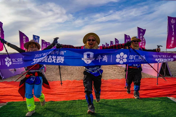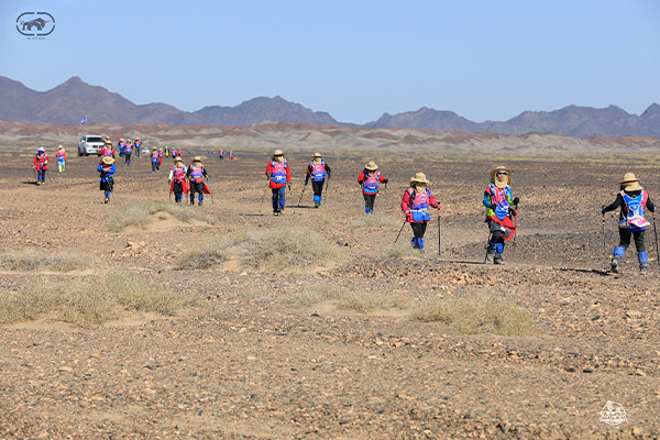 第一天是8小時(shí)25公里,牛商們在太陽還沒完全升起來就開始了遠(yuǎn)征前的熱身,原力專業(yè)的教練,激昂的樂章,鼓舞著雄心勃勃的牛商們,一聲號令全體出發(fā),萬馬奔騰的節(jié)奏開始了,彩旗飄飄,紅裝戰(zhàn)衣,藍(lán)色背包,熒光粉的名號牌,浩浩蕩蕩,塵土飛揚(yáng)!戈壁我們來了!