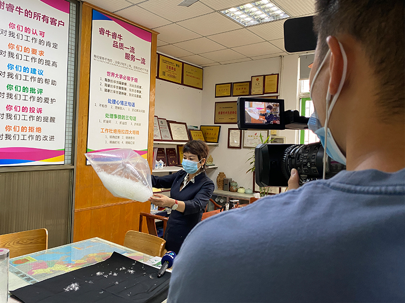 媒體記者參觀了我廠車(chē)間、沖絨房,并采訪了睿牛總經(jīng)理--歐陽(yáng)月華女士。