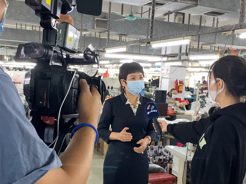 11月3日,佛山電視臺(tái)--【小強(qiáng)熱線】的記者到我們睿牛羽絨服工廠進(jìn)行采訪。