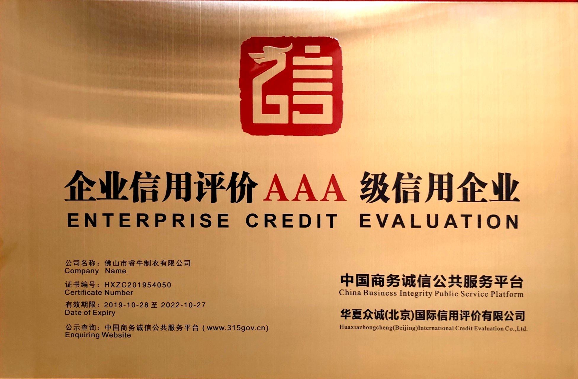 思諾華&睿牛制衣——企業(yè)信用評(píng)價(jià)AAA級(jí)信用企業(yè)