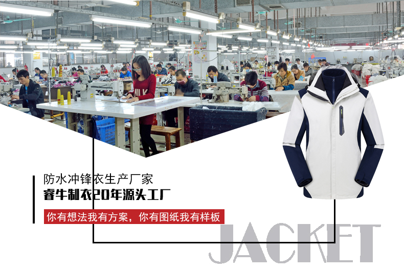 2021-10-07/瀏覽量:260【佛山思諾華服飾公司(睿牛制衣)】是專業加工防水透氣的沖鋒衣定制廠家,可來圖來樣選樣款,均可加工,工廠生產,廠家直供,車內縫,技術精湛全自動定制,全自動縫專業生產師,快速...