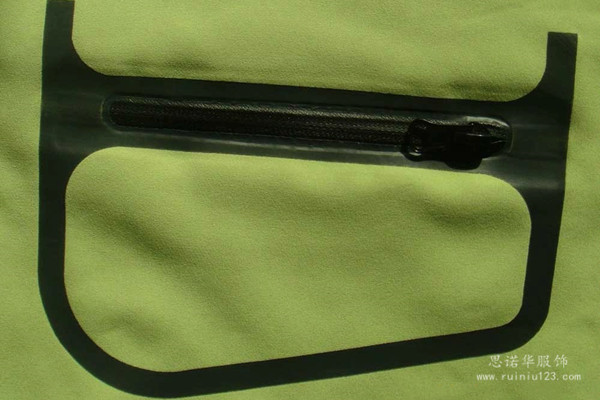 有著20年沖鋒衣加工經(jīng)驗的思諾華服飾,在生產(chǎn)中也引進了相關的鐳射機、壓膠機等設備嵌入此工藝。下面簡略了解一下鐳射無縫壓膠技術(shù),“無縫壓膠口袋”制作原理。