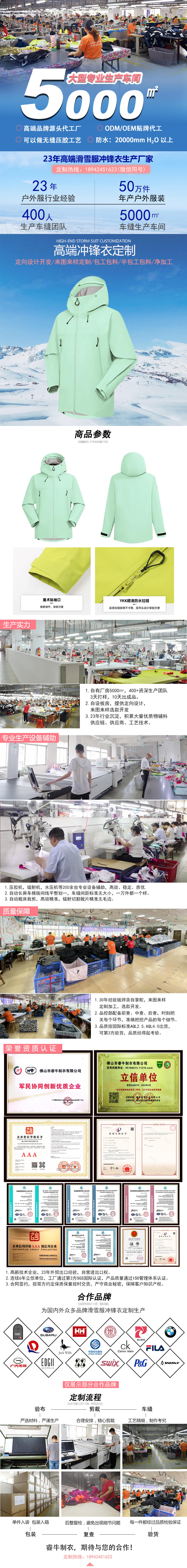 持續(xù)23年專注沖鋒衣、滑雪服定制加工廠家