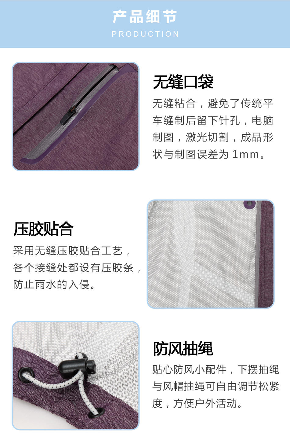 • 防風(fēng)抽繩:貼心防風(fēng)小配件,下擺抽繩與風(fēng)帽抽繩可自由調(diào)節(jié)松緊度,使戶外過膠沖鋒衣更方便戶外活動(dòng)。